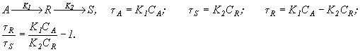 , то для увеличения селективности по продукту R необходимо иметь наибольшее значение концентрации вещества А. Это достигается применением реактора идеального вытеснения или реактора периодического действия. Если использовать реактор смешения, то селективность можно увеличить за счет установки каскада.