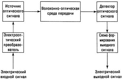 Электрооптический преобразователь (ЭОП) преобразует цифровой электрический сигнал в оптический NRZ- или RZ-сигнал или сигнал, использующий манчестерский код. Он также устанавливает требуемый уровень постоянного смещения входных импульсов. Существуют два источника света, широко используемых сегодня на практике: светоизлучающий диод — СИД (LED) и лазерный диод — ЛД (LD). Оба источника используют модуляцию по интенсивности.