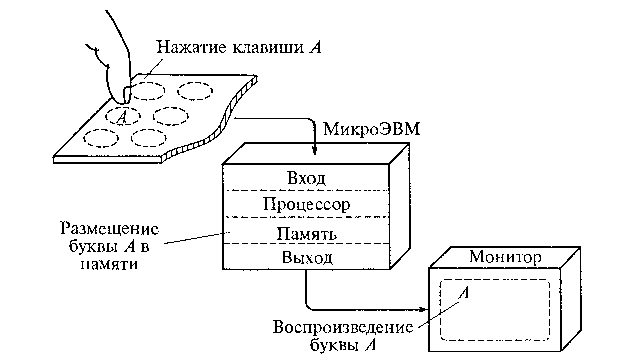 Задача центрального процессора — выполнять программы (программный код), находящиеся в основной памяти (кэш-памяти). Он вызывает команды из памяти (кэш-памяти), определяет их тип, а затем выполняет их одну за другой. Компоненты соединены шиной, представляющей собой набор параллельно связанных проводов, по которым передаются адреса, данные и сигналы управления.