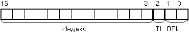 Старшие 13 битов селектора (индекс) выбирают элемент из таблицы GDT или LDT в зависимости от состояния бита TI селектора.