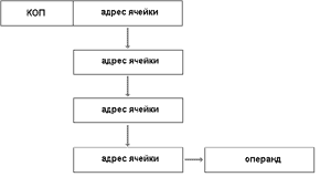 Такой способ адресации называться косвенным. При косвенной адресации количество ячеек с адресами других ячеек может быть несколько (цепочка).