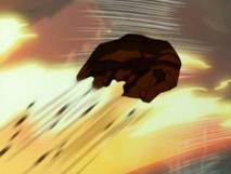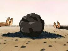 | Каменная «бомба» | Бросая камень сверху, маг встаёт на него и придаёт камню дополнительное ускорение, что создаёт при падении серьёзный разрушительный эффект. Этот приём использовал Аанг в поединке против Зуко в серии «Перекрёстки судьбы». Приём опасен тем, что сам маг земли может пострадать при его исполнении. | |