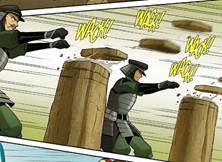 | Движущиеся колонны | Маг земли может создать ряд движущихся по земле колонн, чтобы дезориентировать противника. Тоф, используя этот приём в серии «Комета Созина, часть 1: Король Феникс», придала колоннам вид солдат Народа Огня. | |