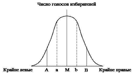 Рис. 9.2 – Распределение голосов избирателей в соответствии с их идеологическими предпочтениями