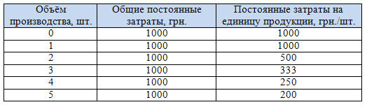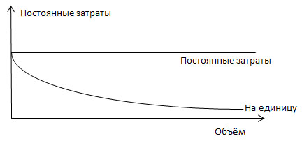 Рис. 1.1. Постоянные затраты на объем и на единицу продукции.