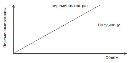 Рис. 1.2. Переменные затраты на объем и единицу продукции.