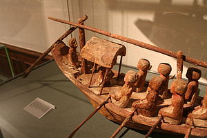 Модель лодки из гробницы Херишеф-хотепа (Абусир, период IX или X династии, Египетский музей при Лейпцигском университете).
