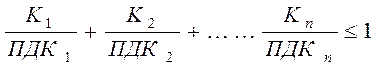 . Если в помещении находится несколько вредных вещ-в однонаправленного действия, должно выполнятся след. условие: