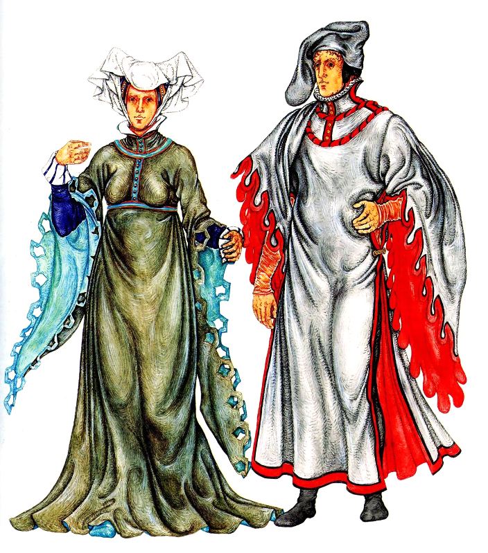 Разумеется, такая изощренность была присуща только костюмам богатых и знатных людей. В одежде этого периода все более заметно сословное различие. Народный же костюм со времен раннего средневековья почти не изменился.