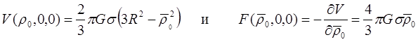 Выведем выражения для потенциала притяжения V (r0,0,0) и его первой производной F(r0,0,0) для однородного шара, не вращающегося.