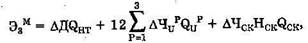 где Д — сокращение продолжительности периода временной нетрудоспособности по причине заболеваний и травм из-за неблагоприятных условий труда, дни/год; Qнт — размер пособий в данной отрасли (народном хозяйстве), р./день; ЧОР — уменьшение числа работников, получивших инвалидность р«й группы, ввиду сокращения числа травм и заболеваний, чел./год, Qup — средний размер пенсии работников р-й группы инвалидности р./(мес чел.); ЧСК — уменьшение количества работников, нуждающихся а санаторно-курортном лечении, чел./год; Нск — средняя продолжительность санаторно-курортного лечения, дни/чел. Qск — средняя стоимость одного дня пребывания в санаторно-курортном учреждении, р./день.