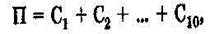 где C1,..., С10 —- соответственно: C1 — стоимость расследования несчастных случаев; С3 — стоимость оказания первой доврачебной помощи; С3 — стоимость амбулаторного и клинического лечения; С4 — сумма выплат по больничному листу; С6 — сумма выплат к среднему заработку при переводе на низкооплачиваемую работу; Са — выплаты при получении инвалидности ила смертельном исходе; С, — выплаты по уходу за инвалидами; C8 — затраты на переквалификацию пострадавшего и обучение новых рабочих; С9 — убытки в виде валовой продукции, недополученной вследствие снижения производительности труда; С10— убытки в виде валовой продукции, недополученной из-за невыхода на работу, и т. д.