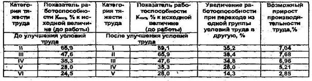 По имеющимся данным, рациональный комплекс мероприятий, направленных на улучшение условий труда, может обеспечить прирост производительности труда от 6 до 25% и более. Многочисленные исследования