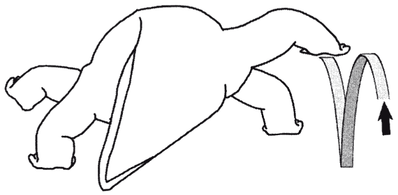 Когда у наших древних предков-млеко питающих (или у пресмыкающихся, ставших впоследствии млекопитающими) конечности стали располагаться вертикально, при ходьбе и беге их движения в виде более плоской дуги стали совершаться непосредственно под туловищем.