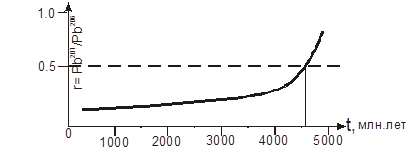 в результате распада урана между заданным моментом в прошлом и настоящим временем, получаем возраст Земли, близкий к 4550 млн. лет.