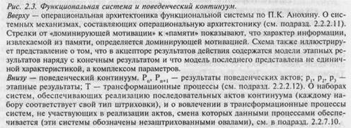 тов, реально полученных при реализации программы действия. При сличении с параметрами полученных этапных результатов выявляется соответствие хода выполнения программы запланированному, при сравнении с параметрами конечного — соответствие достигнутого соотношения организма и среды тому, для достижения которого была сформирована система. Эти системные механизмы составляют операциональную архитектонику любой функциональной системы (рис. 2.3). Их введение в концептуальную схему можно оценить как еще одно преимущество и признак, отличающий ТФС от других вариантов системного подхода.