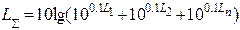 L1, L2, Ln- уровни интенсивности звукового давления в расчетной точке, дБ.