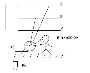 Датчиком является реле максимального напряжения RЗ, включенное между защитным корпусом и вспомогательным заземлителем Rв. Электроды вспомогательного заземлителя размещаются в зоне нулевого потенциала не ближе 15-20 м от заземлителя корпуса Rв или заземлителей нулевого провода. При пробое фазы на корпус на нем появляется напряжение относительно земли, при напряжении 20-60 В срабатывает реле напряжения RЗ и разрывает цепь катушки управления ОК. Сердечник этой катушки освободится и разомкнет контакты автоматического выключателя АВ. Схема отличается простотой, но требует вспомогательного заземлителя.