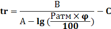 Р1, Р2- давление насыщенных паров, соответствующего верхнему и нижнему концентрационному пределу