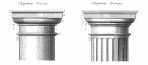 Дорический ордер сформировался примерно в VII в. до н.э. Колонны, выполненные по канонам этого ордера, не имеют базы, они более мощные и приземистые, чем в других ордерах. Дорическая колонна лаконична. Каннелюры, обычно не более 20-ти, проходят вдоль всего ствола, что визуально утончает колонну, делает ее выше. Капитель состоит из круглой в сечении плиты эхина и невысокой квадратной плиты абаки. Узкое гладкое кольцо, прорезающее колонну под капителью, придает ей эстетическую завершенность, служит логичным переходом от вертикального рисунка каннелюр к горизонтальным элементам капители.