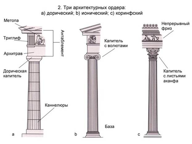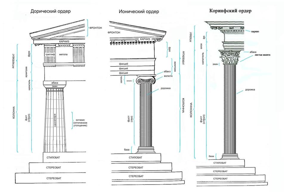Древнегреческие колонны: дорическая, ионическая, коринфская