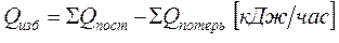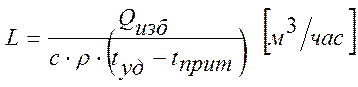 –разность интенсивности теплопоступлений и теплопотерь, Qпост - тепло от людей, от с-мы освещения, от производ-го оборуд-я, Qпотерь - ч/з наружние ивнутр-е ограждения, c – уд-ная теплоемкость воздуха,