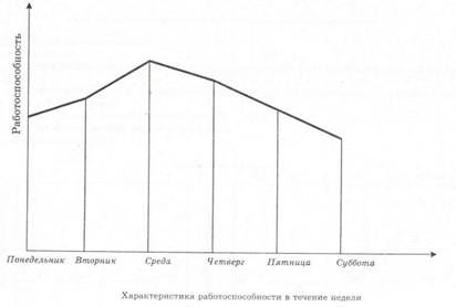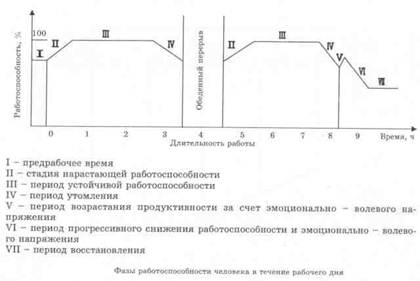 Работоспособность человека изменяется в течение смены. Понижение работоспособности называется утомлением. Такое состояние характеризуется рядом признаков: повышение давления, уменьшение содержания сахара в крови, снижение производительности труда.
