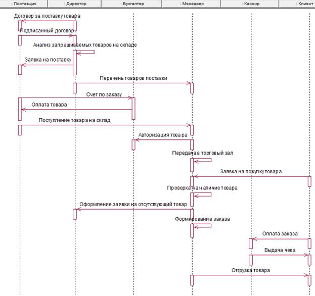 На данной диаграмме рассматривается последовательность действий оформления заказа на товар у поставщиков (рис. 2).