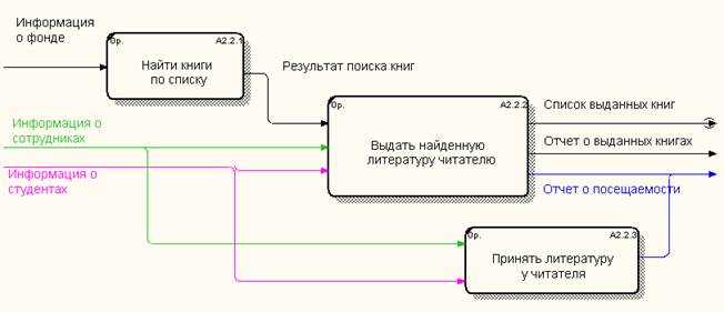Рисунок 7 – Декомпозиция процесса A2.2 “Организовать работу читального зала и книгохранилища”