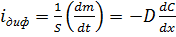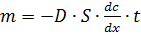 есть не что иное, как количество вещества m, продиффундировавшее в единицу времени через единицу площади. Поэтому