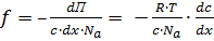 Тогда, если молярную концентрацию растворенного вещества обозначим через С, то движущую силу f, приходящуюся на одну частицу, можно представить: