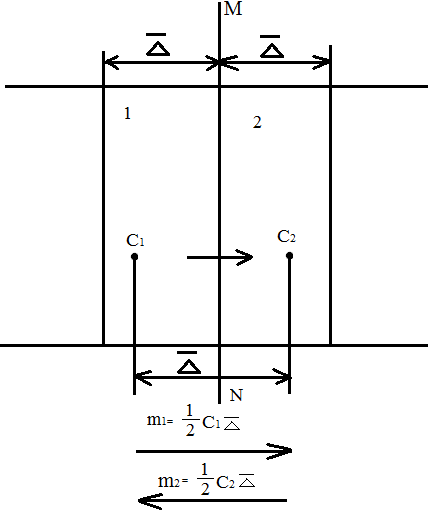 И понятно, что за счет броуновского движения, перенос любой частицы вероятен и вправо и влево. Масса вещества, перенесенного за время t, через воображаемую плоскость MN