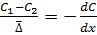 имеет отрицательное значение, т.к. с увеличением значений Х величина С уменьшается. Часто для описания диффузии используют удельный поток диффузии.