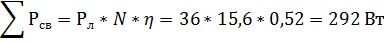 Это число показывает, что мощность светильников с люминесцентными лампами почти в 4,2 раза меньше, чем мощность ламп накаливания.