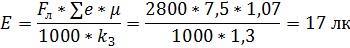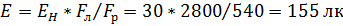 1. Найдём фактическую освещённость в цеху при выбранной мощности лампы: