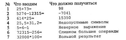 На месте а и b стоят десятичные цифры; значком Å обозначен один из знаков операций: +, -, *. Нужно, чтобы машина вычислила это выражение и после знака = вывела результат. Операция деления не рассматривается для того, чтобы иметь дело только с целыми числами.