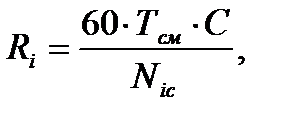 Ритм производства Ri – это время, приходящееся в среднем на выпуск одного автомобиля из данного вида ТО, или интервал времени между выпуском двух последовательно обслуженных автомобилей из данной зоны: