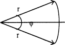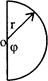 2. При 0,5< n < 1м/с - зона химического заражения имеет вид полуокружности (рис.17.2). Условный размер зоны (j) = 180°. Радиус полуокружности (r) равен глубине зоны заражения (Г). Биссектриса полуокружности совпадает с осью следа облака и ориентирована по направлению ветра.