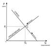 В графической модели рынка экономическое равновесие достигается в точке пересечения кривых спроса и предложения. Так, в точке С объем предложения будет равным объему спроса, благодаря чему устанавливается цена равновесия (Р0), одинаково удовлетворяющая как покупателей, так и продавцов. При любой более низкой цене излишек спроса будет толкать цену вверх, а при цене выше равновесной, излишек предложения будет толкать цену вниз.