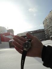 Рис. 5. Ориентирование по солнцу с помощью наручных часов.