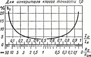 Iх/Iи = Rом / (Rом + Rх) = 1 / (1+ Rх/Rом) (5)