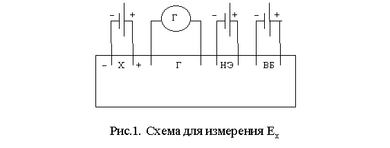 где: RN - установочное сопротивление; Rt - регулируемое подгоночное сопротивление, соответствующее окружающей температуре. Установив значение рабочего тока, можно измерить неизвестную ЭДС (напряжение). Для этого переводят переключатель"НЭ", "Х" в правое положение "Х" и регулированием величины компенсационного сопротивления добиваются, чтобы гальванометр показал 0. В этом случае падение напряжения в компенсационном сопротивлении (Rк) точно равно измеряемой ЭДС (напряжению), т.е. Iр Rк = Ех; откуда, подставив вместо Iр его выражение из формулы (1), получим: