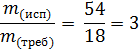 4. Находим отношение массы использованной воды к массе требуемой по уравнению реакции: