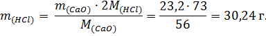 Сколько (мл) соляной кислоты массовой доли 36,5 % и плотностью 1,2 г/мл потребуется для взаимодействия оксида кальция, который содержится в цементном порошке массой 40 г, если на долю оксида кальция приходится 58%.