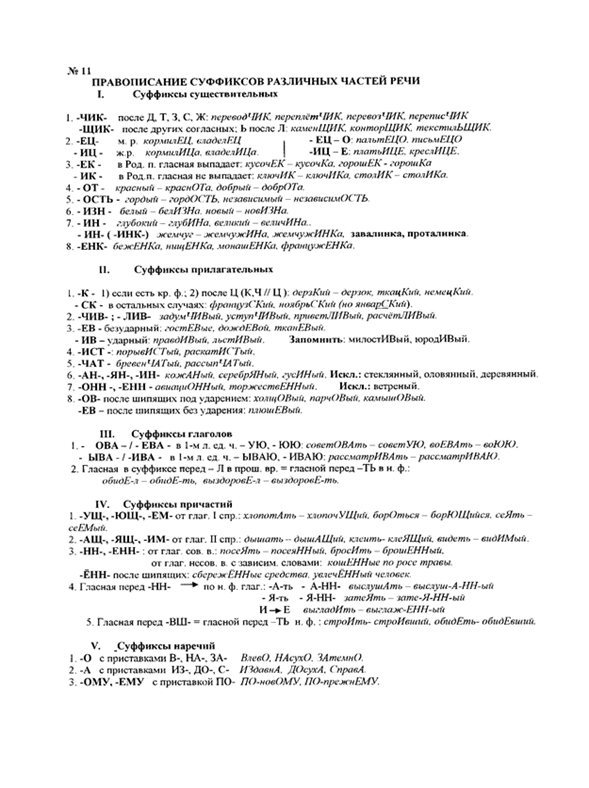 I. Правописание суффиксов различных частей речи (кроме -Н-/-НН-).