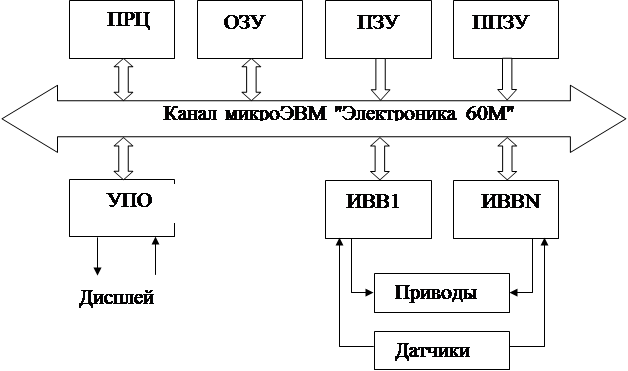 Рис. 1. Архитектура СУ на базе микроЭВМ "Электроника 60М"