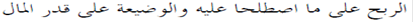 Однако относительно убытков, все исламские правоведы единогласны во мнении, что каждый партнёр должен принимать их на себя строго в соответствии с долей его инвестиций. Следовательно, если партнёр инвестировал 40% от общего капитала, то он должен принять на себя 40% убытков, не больше, и не меньше, и любое условие противоречащее этому, делает контракт недействительным. Это мнение абсолютно единогласно принято всеми правоведами[3].