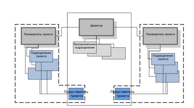 Примером использования механизма посредника в интеграции проектной и «материнской» структур являются представители проектов в головном офисе всей компании.