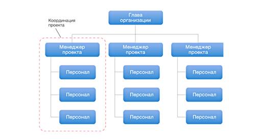К проектным можно отнести различные дивизиональные структуры,организующие деятельность не по принципу функционального разделения труда, но концентрируются в направлении достижения определенных целей в географическом регионе, в отдельном секторе рынка, или дифференцируют свою внутреннюю деятельность по направлению к определенному виду клиентов или созданию и/или продвижению отдельных видов товаров. При этом они отодвигают функциональный принцип организации на второй план и не превращаются в матричную структуру.