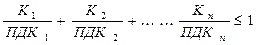 . Если в помещении находится несколько вредных вещ-в однонаправленного действия, должно выполнятся след. условие:
